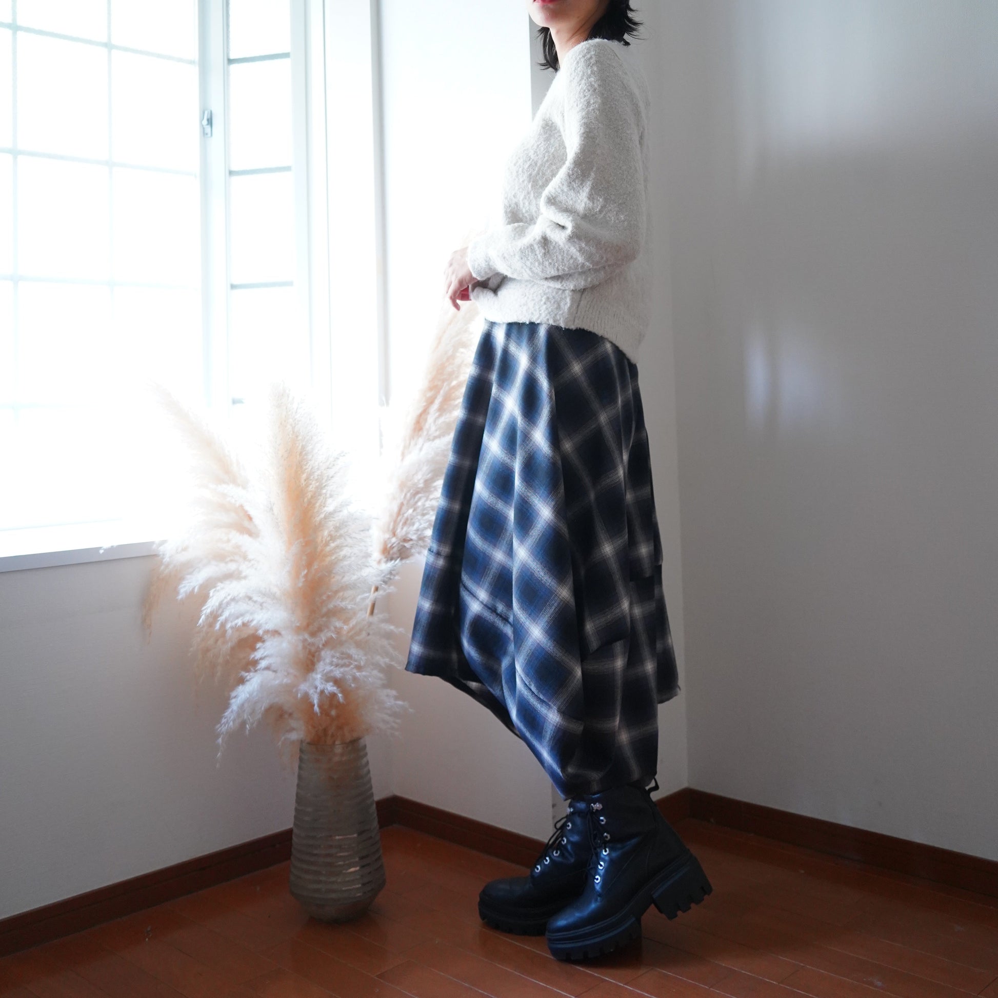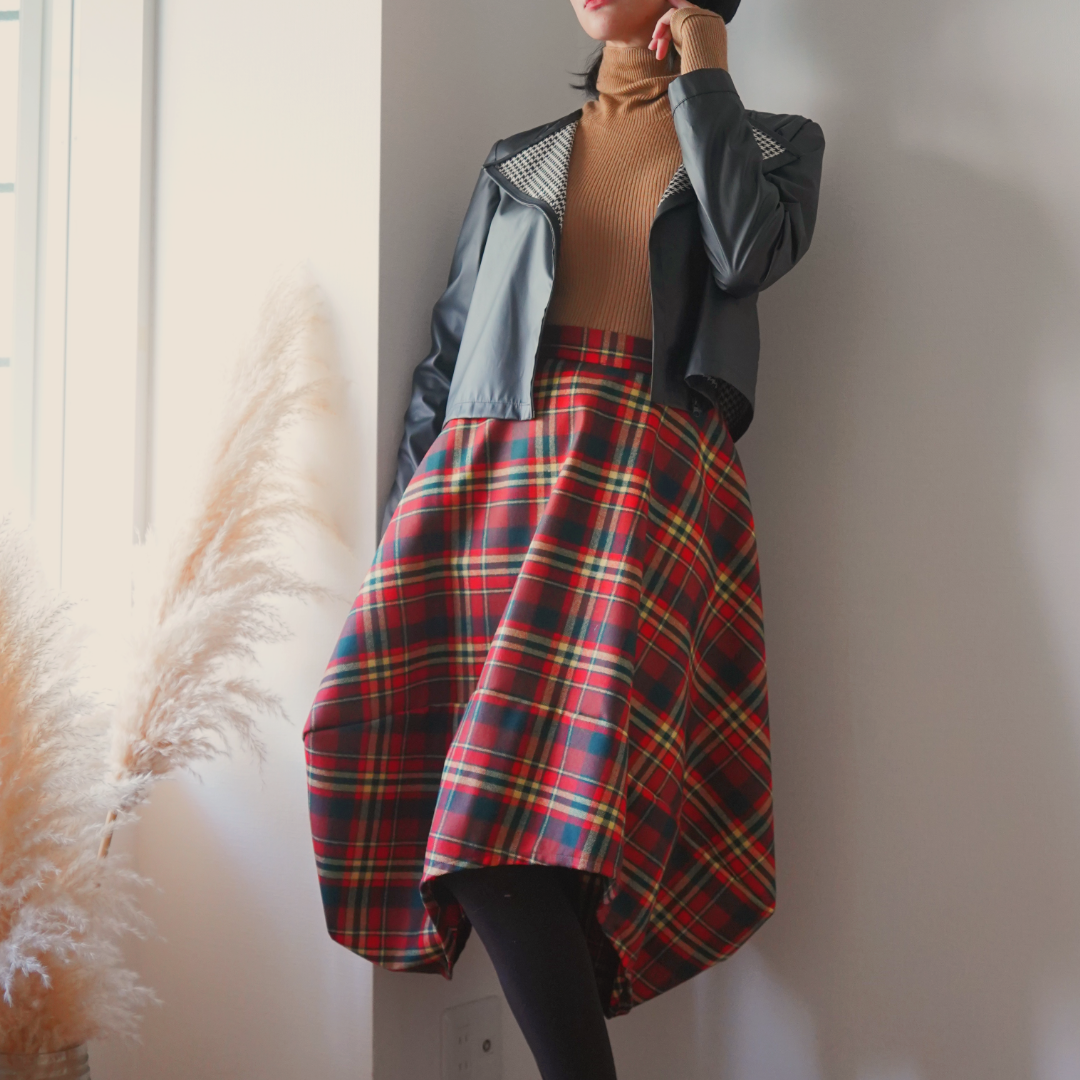 ウエスト回りはフレアーなシルエットが美しいスカートです。裾はアシンメトリーで遊びがあり、個性的。