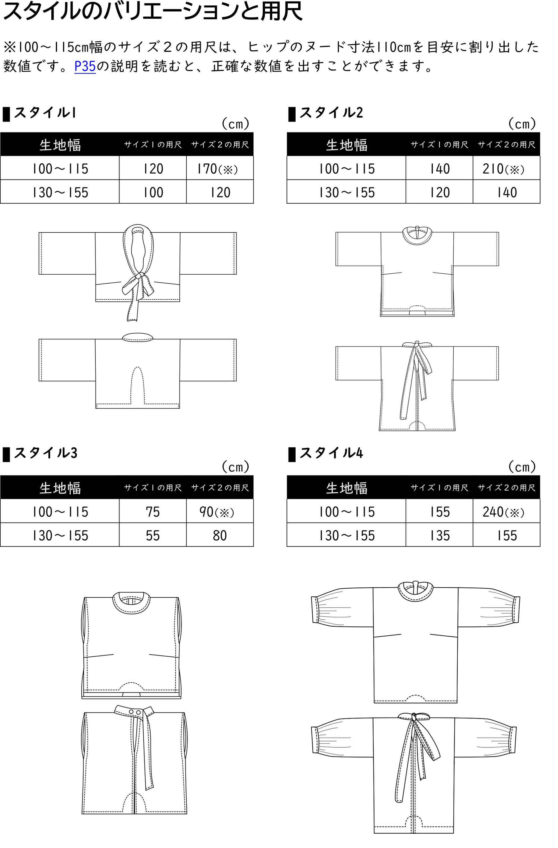 スタイル4 生地幅130~155cm:135cm/ 生地幅100~115cm: 155cm